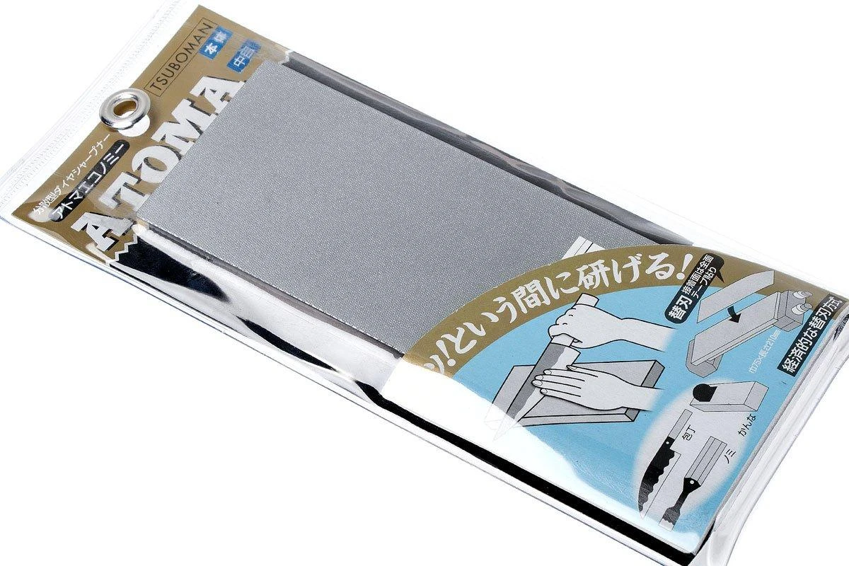 Esta piedra Atoma Diamond es una piedra de afilar de diamante gruesa de alta calidad. Se usa para restaurar filos extremadamente dañados de hojas u otras herramientas. Sin embargo, también puedes utilizar fácilmente esta piedra Atoma como piedra de aplanar para piedras de afilar convencionales.