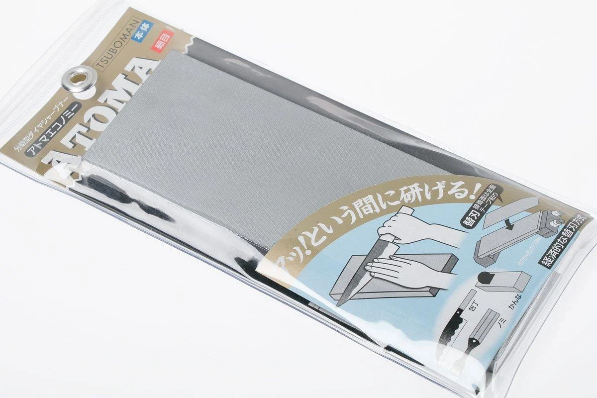 Esta piedra Atoma Diamond es una piedra de afilar de diamante áspera de alta calidad. Se usa para restaurar filos extremadamente dañados de hojas u otras herramientas. Sin embargo, también puedes utilizar fácilmente esta piedra Atoma como piedra de aplanado para piedras de afilar convencionales.