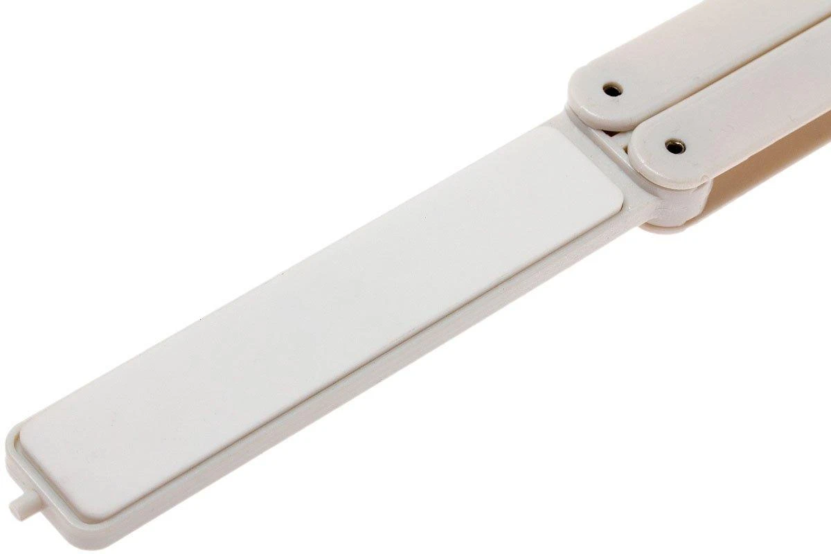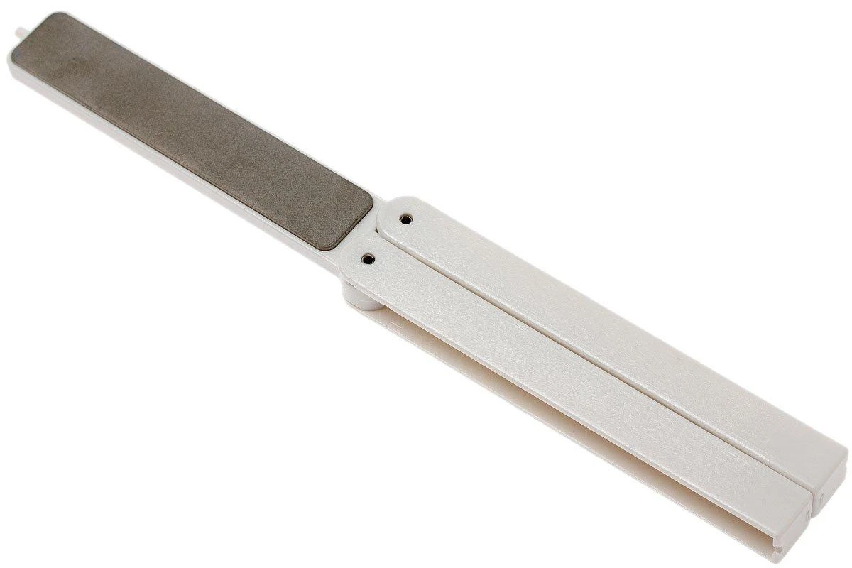 La EZE-LAP EZE-Fold 530 es una piedra de afilar de doble cara. En un lado hay una superficie de afilado de diamante con un tamaño de grano súper fino (grano 1200). Hay una superficie de afilado de cerámica en el otro lado. La piedra de afilar tiene asas blancas que se doblan alrededor de la piedra cuando se pliega. Como resultado, la piedra está siempre bien protegida. Es ideal para llevarla de viaje, a la caza o a la pesca, pero también es práctica para el hogar.