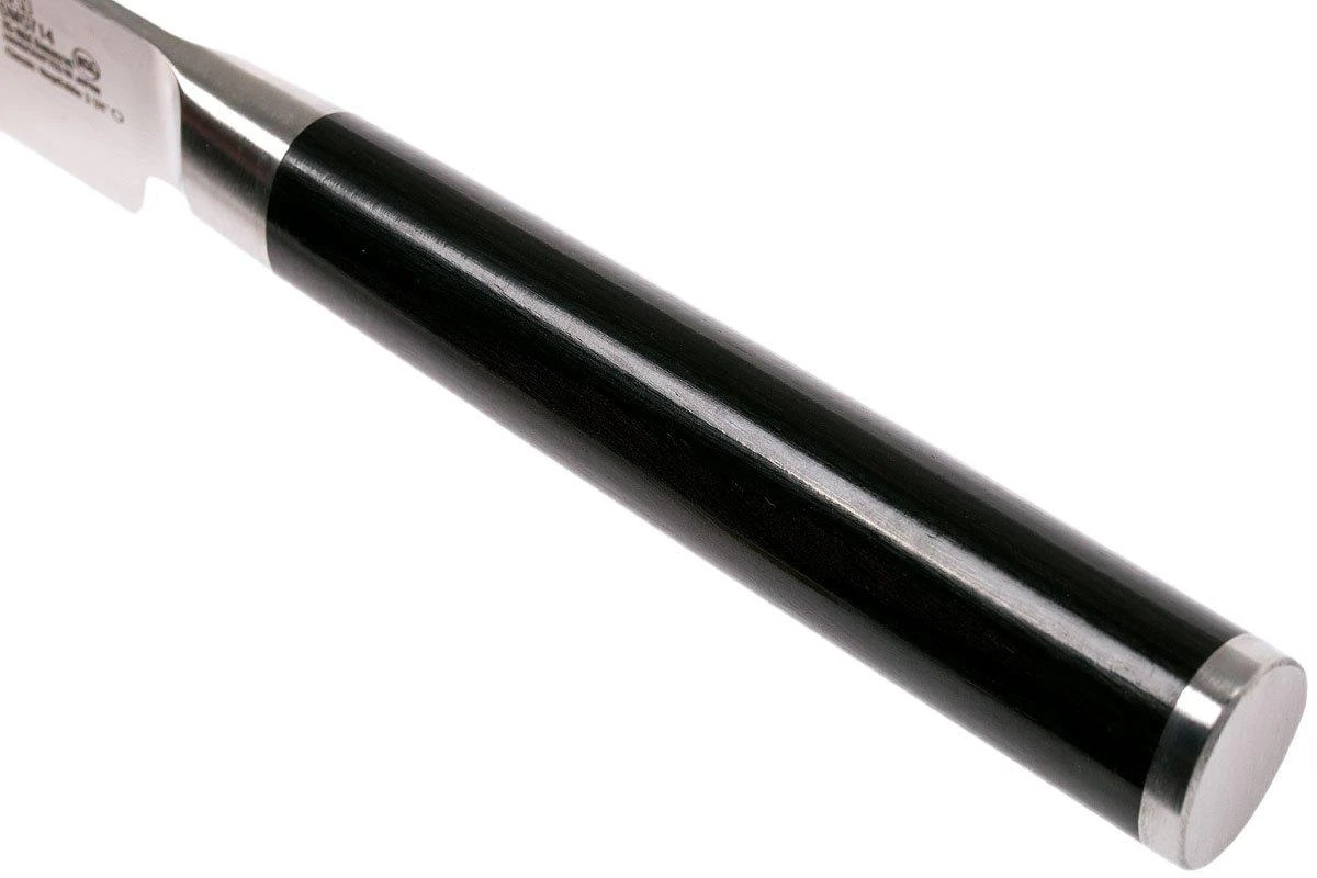 La colección Shun Classic está compuesta por preciosos cuchillos de cocina con acero de damasco de 32 capas. El núcleo VG-MAX proporciona unas propiedades de corte insuperables. Los mangos son de madera laminada de Pakka y tienen una forma asimétrica. Esta colección de cuchillos es una de las más extensas del mundo. Por su aspecto y por sus excelentes propiedades de corte, este cuchillo es un placer absoluto para la vista e increíble de usar. Cuchillo de pelar verduras de la colección Shun.